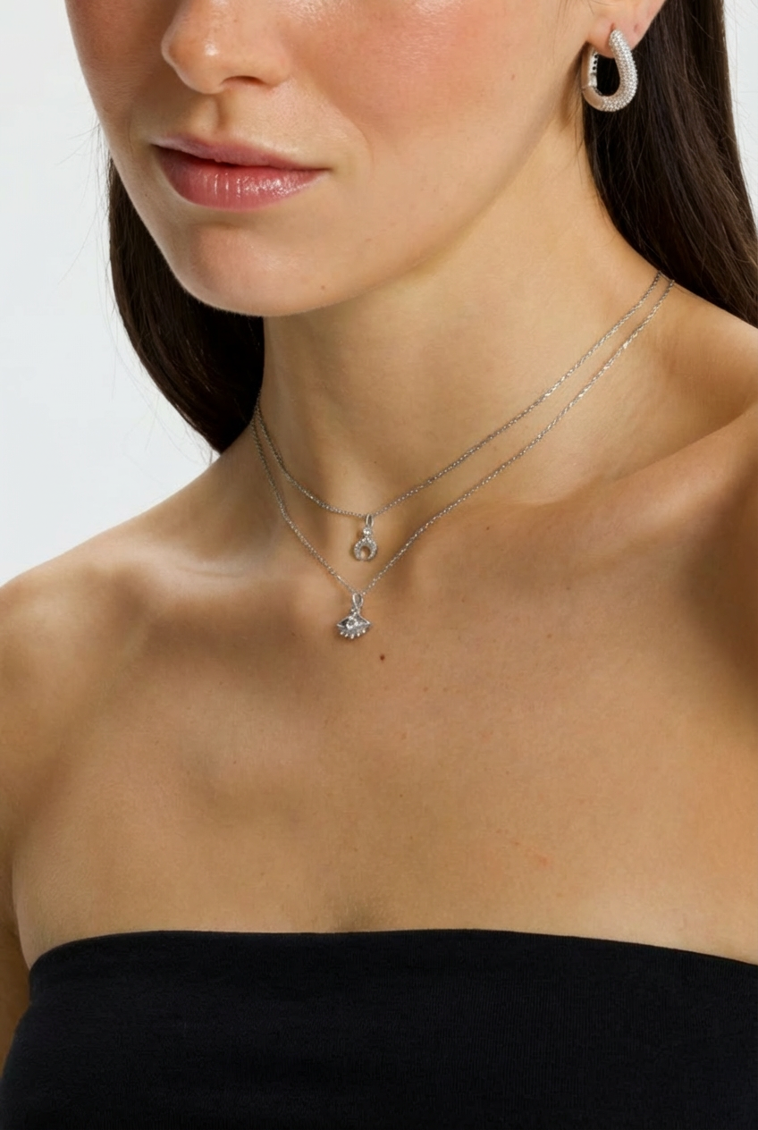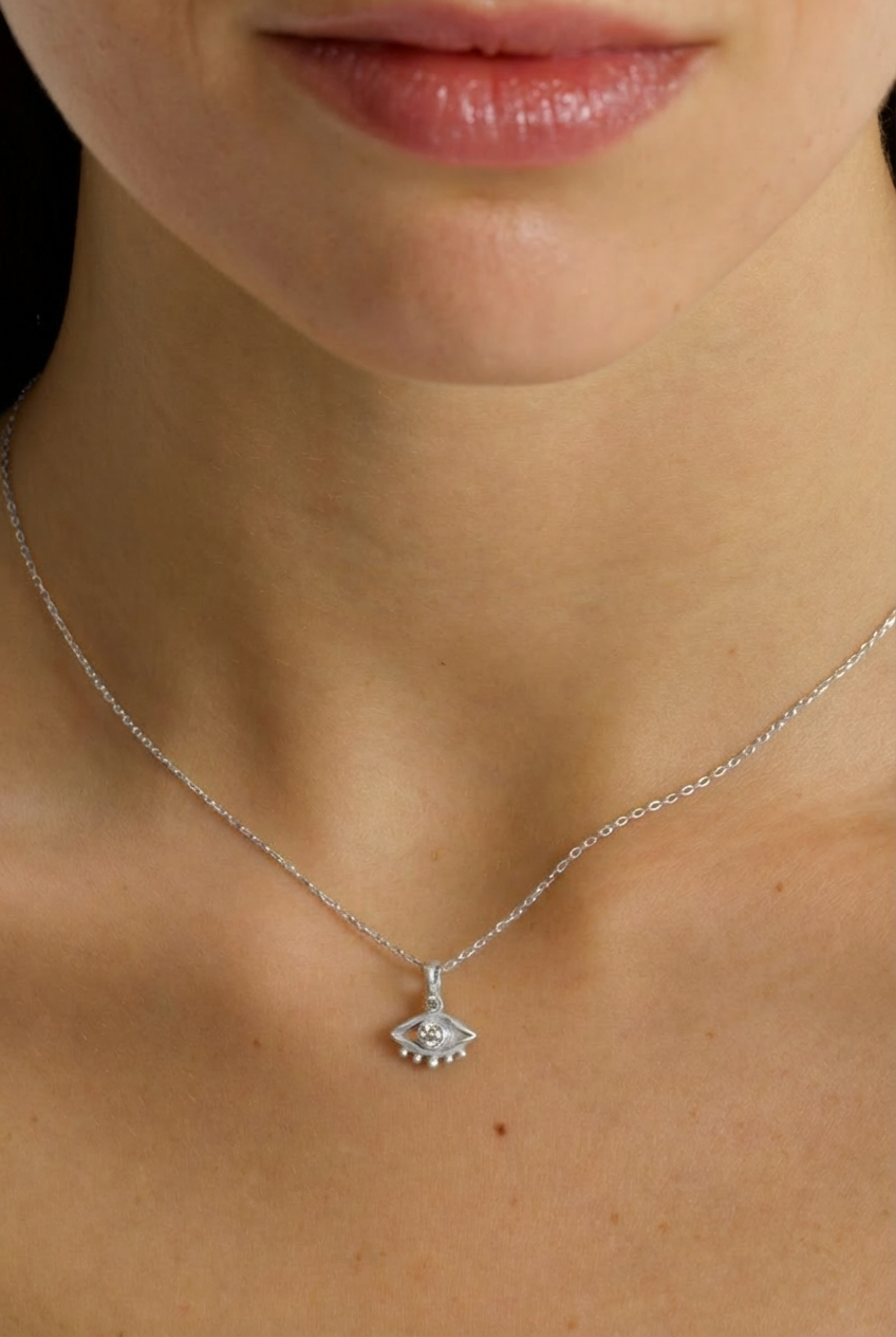 Elysian Eye Kolye, koruyucu göz sembolünü modern bir dokunuşla yeniden yorumlar. Ortadaki ışıltılı taş, tasarıma derinlik katarken altındaki ince detaylar büyülü bir enerji hissi yaratır. Hafif zinciriyle günlük kullanımda zarif bir duruş sunar; tek başına ruhani bir sembol, diğer kolyelerle kombinlendiğinde ise modern bir stil tamamlayıcısı olur. Hem şans hem de şıklık taşıyan özel bir parçadır.